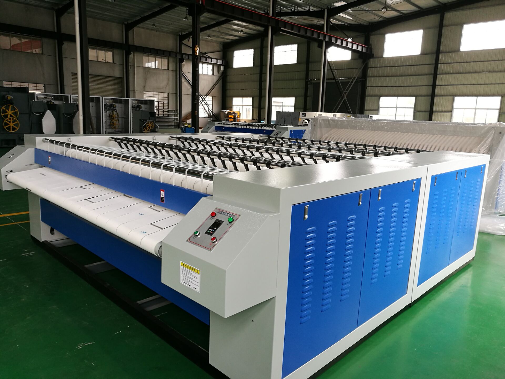 1、在織物熨燙前,先將滾筒表面清洗干凈,再用軟布將滾筒表面及機器各部擦干凈,機器清潔。